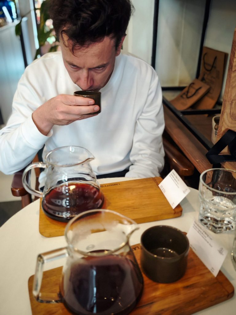 Avec Guillaume, nous partons découvrir un projet qui nous touche particulièrement : Lovely Hills Coffee. Dans les collines qui entourent Pokhara, une famille cultive du café biologique sur de petites parcelles. Le café pousse ici à l’ombre d’autres cultures, dans un environnement encore préservé. Rencontrer ces producteurs, goûter leur café, comprendre leur travail… c’est une autre manière de voyager. J’ai déjà hâte d’y retourner avec des gens pour partager cette découverte. La journée se termine dans un coffee bar de Pokhara où l’on déguste un café préparé avec précision.