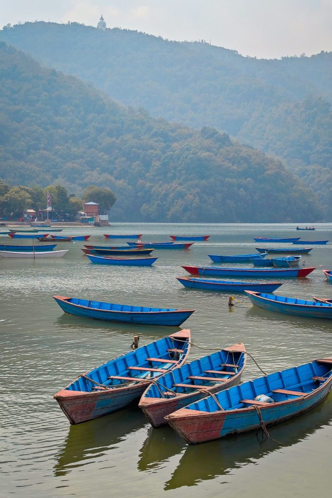 Le cœur de la ville s’organise autour du Phewa Lake, un grand lac paisible sur lequel glissent des barques colorées. Par temps clair, le reflet des sommets de l’Annapurna et du Machapuchare apparaît à la surface de l’eau. Mais pas cette fois.