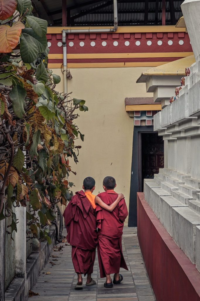 Autour du monument, la vie s’organise lentement. Les pèlerins (et les touristes) tournent autour du stupa dans le sens des aiguilles d’une montre. Les moulins à prières tournent doucement sous les doigts. Les moines tibétains marchent calmement tandis que les voyageurs observent en silence. Je passe du temps à marcher autour du stupa. À observer les visages. À écouter les prières murmurées. Dans ce quartier, le temps semble ralentir.