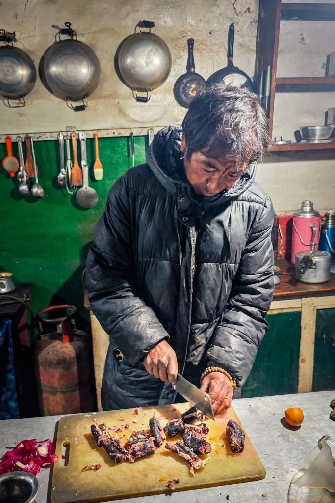 Je découvre aussi avec Furba la cuisine sherpa dans un tout petit restaurant caché au fond d’une ruelle, près de la stupa. Il me fait entrer, presque discrètement, dans l’univers culinaire de l’ethnie dont il est issu. La cuisine est simple, sincère et c’est justement ce qui la rend si juste. J’adore…