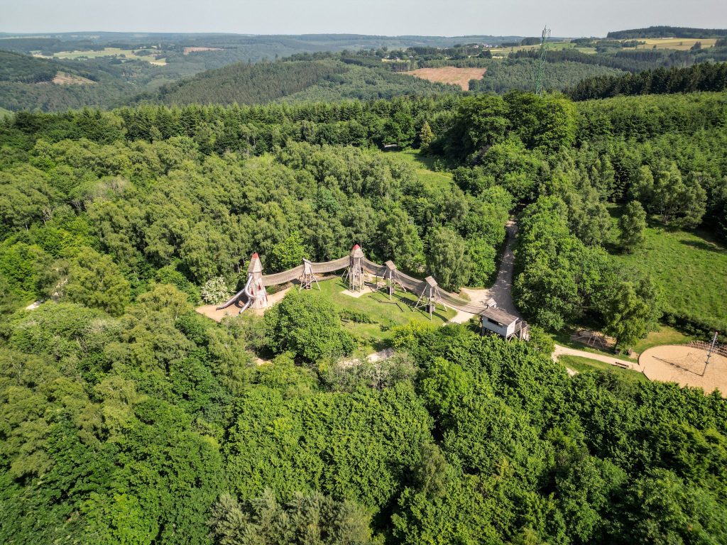 L’itinéraire nous mène ensuite au Parc Chlorophylle, un espace ludique et pédagogique niché au cœur de l’Ardenne. Sur une dizaine d’hectares de forêt, le parc propose un parcours en plein air ponctué de passerelles, cabanes et panneaux interactifs qui expliquent le fonctionnement de l’écosystème forestier.