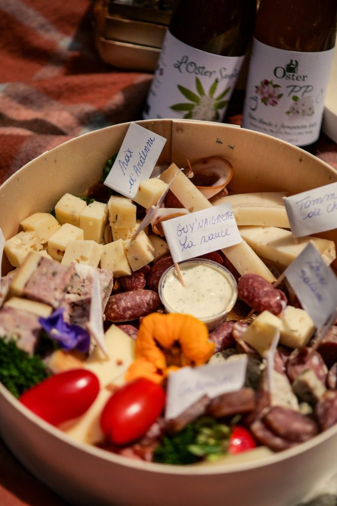 Le joli panier a été préparé par Le Comptoir de Sophie, une épicerie locale (Manhay) engagée dans le circuit court, proposant une large gamme de produits de terroir : fruits, légumes, fromages, viandes, pains, boissons et spécialités artisanales. On y trouve aussi un comptoir de fromages et charcuteries, ainsi que des planches apéritives, raclettes et paniers garnis, tous composés à partir de produits locaux soigneusement sélectionnés. La bière, je la connais déjà : L’Oster Sauvage, une bière blanche à l’Aspérule odorante brassée artisanalement dans le village voisin du même nom.