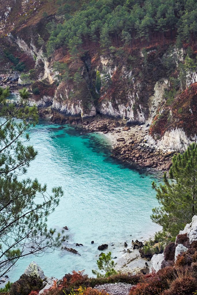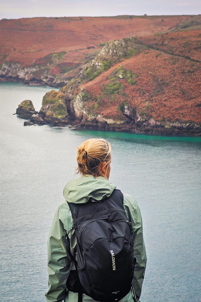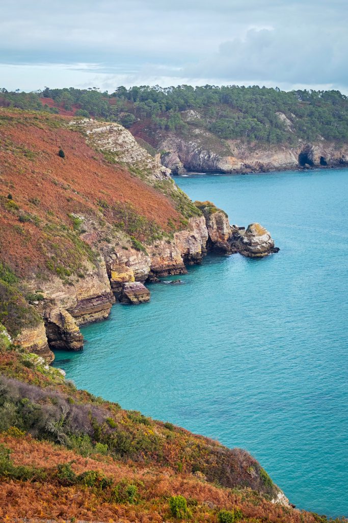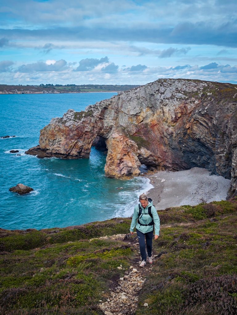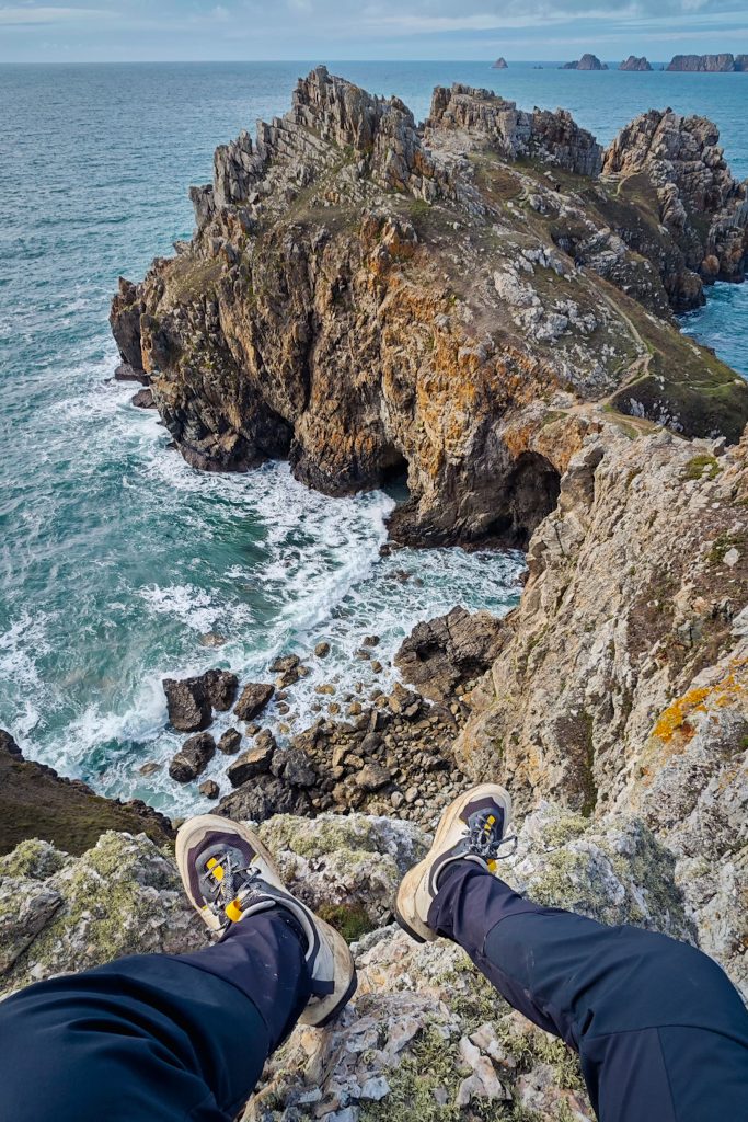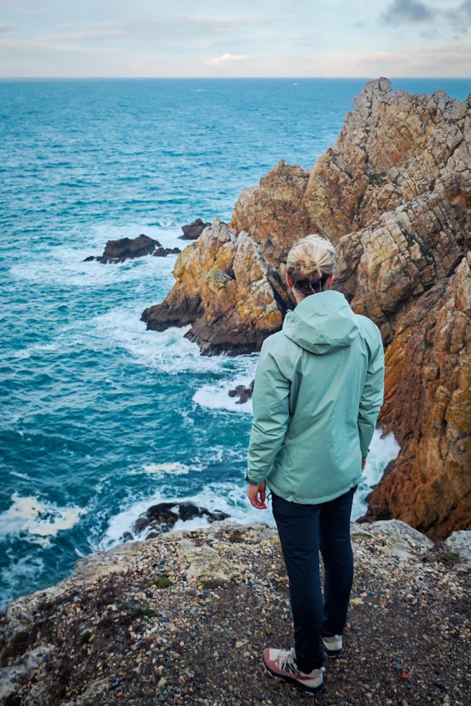 Ce que j’ai aimé sur ces parties du GR®34, c’est cette palette presque irréelle qu’on ne trouve qu’ici : les falaises abruptes, l’eau qui oscille entre agitation et ce bleu glaz, ce mélange breton de vert, de bleu et de gris qui change à chaque minute.