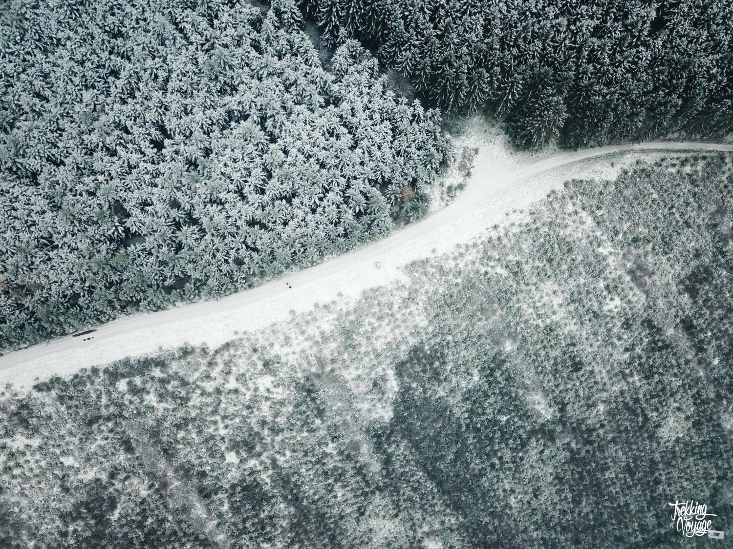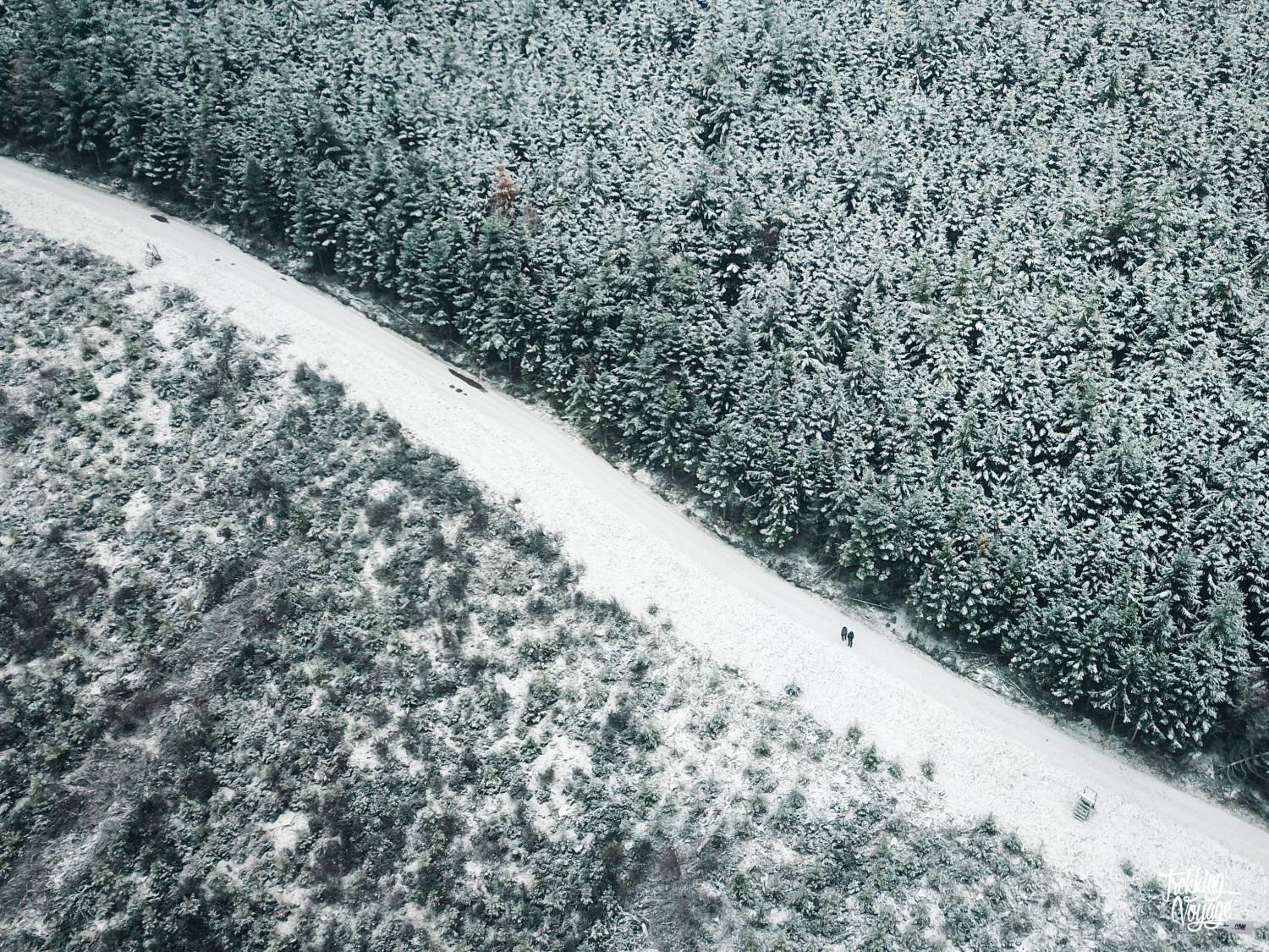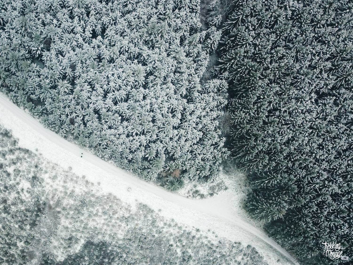 Le paysage vallonné est presque immaculé et l’ambiance hivernale et sauvage augmente au fur et à mesure que l’on s’éloigne des habitations et que nous montons dans la forêt… Ces conifères saupoudrés m’envoûtent et me rappellent que la Haute Ardenne est belle mais aussi rigoureuse.