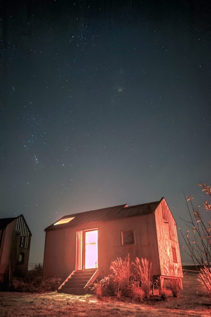 Ça a quelque chose du refuge de montagne : ces soirées où l’on refait le monde autour de la journée écoulée, où des inconnus deviennent compagnons de discussion le temps d’un feu. On parle du coin, des chemins, de ce qu’on a vu. Et puis il y a ce feu qui crépite, qui rassemble sans bruit. Cette ambiance-là, je l’aime profondément. Il est intéressant de noter que l’ensemble est privatisable (cabanes et foyer) pour permettre d’accueillir confortablement une bande de 16 personnes !