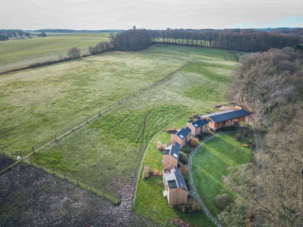 Le Domaine des Trois Tilleuls est donc situé à deux pas de Villers-la-Ville, sur les hauteurs de la Thyle, dans un coin où le silence reprend vite ses droits. Au coeur du domaine, là où galopent les chevaux, on trouve un petit village de quatre cabanes champêtres. Elles sont prévues pour 2 à 4 personnes et imaginées par Daisy et Tanguy comme des « refuges contemporains ».