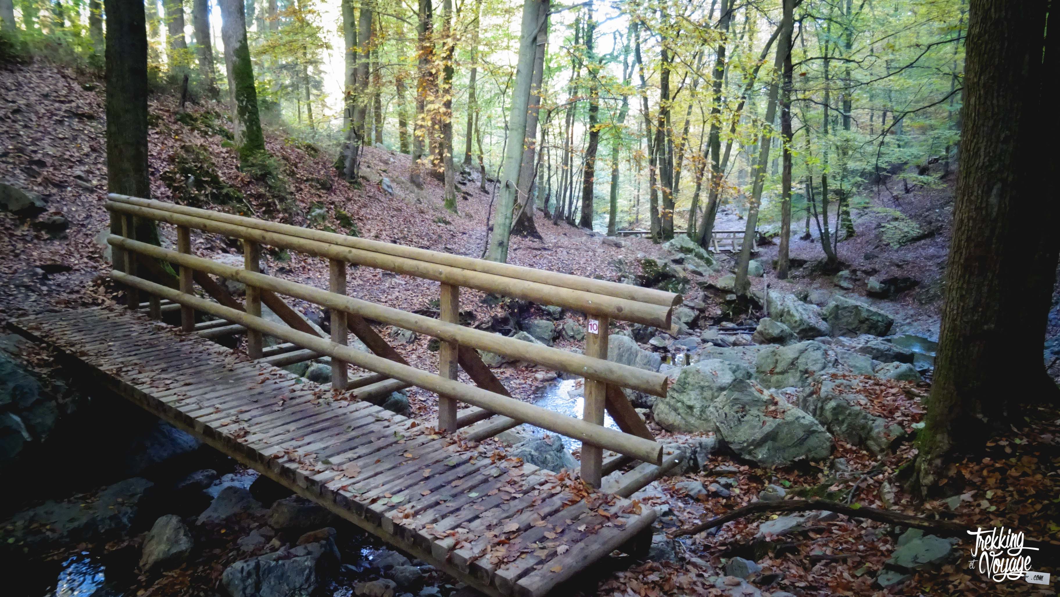 Bien aménagé, le sentier longeant le torrentueux ruisseau contourne d’énormes blocs de quartzite, façonnant çà et là un ensemble de « cuves » ou « bains » successifs aux noms légendaires évocateurs comme le bain de Diane, le bain de la Loutre, le bain d’Hermès, le bain des Naïades, le bouillon (ou cascade) de la Chaudière, le bain du Cerf ou encore le bain de Vénus.