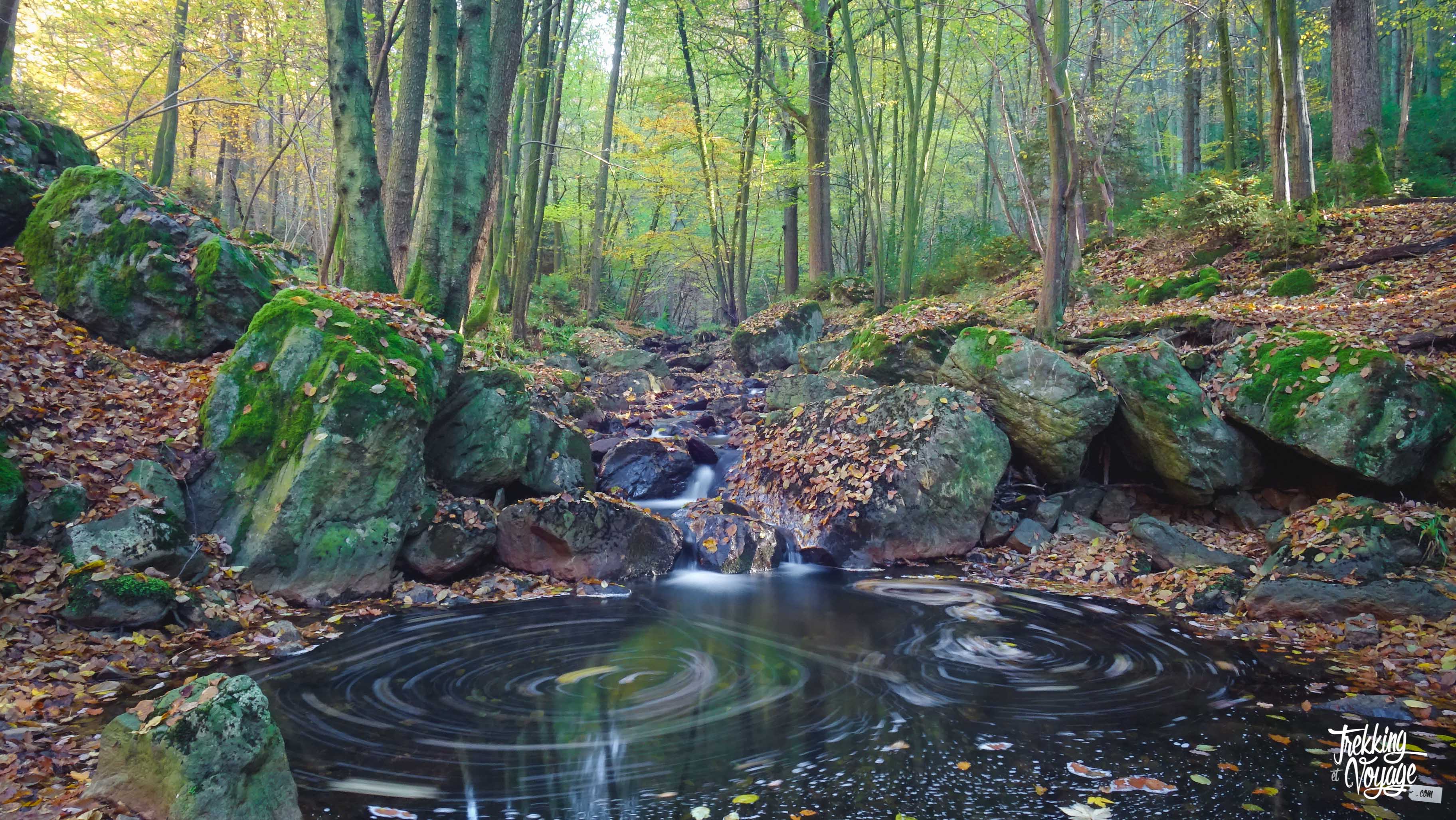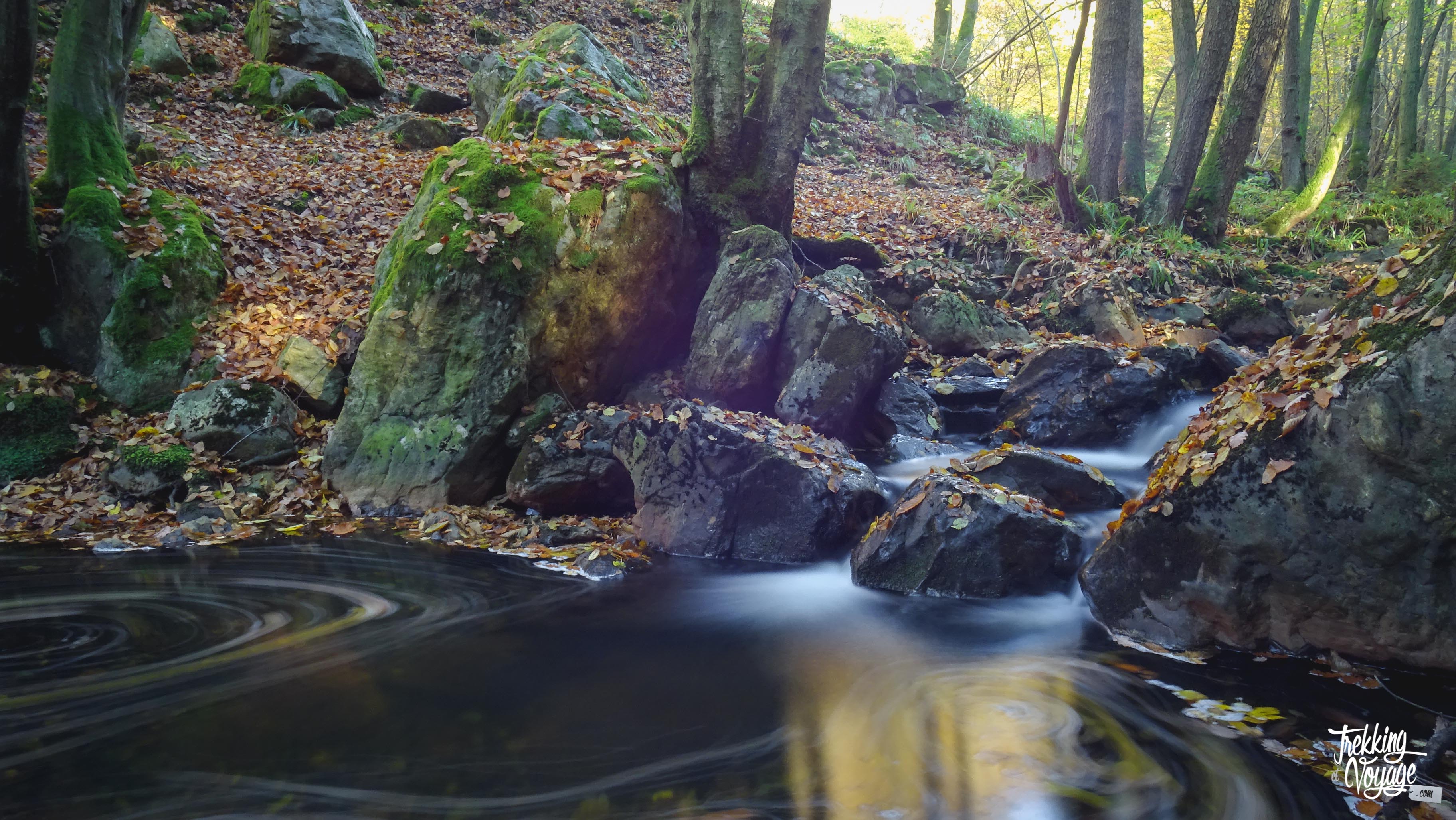 Au grand désespoir d’Alex et de son molosse survitaminé, je prends le temps de faire quelques photos le long d’un ruisseau magnifique qui est un paradis pour les photographes, même amateurs comme moi. Je vous invite également à profiter de cet endroit enchanteur, au rythme des clapotis et des feuilles tombantes…